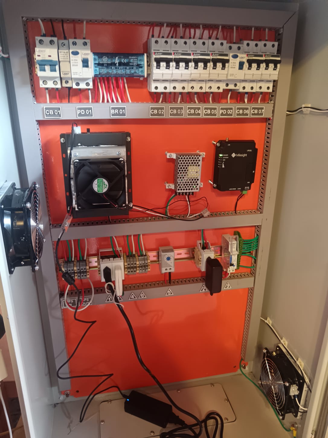Fabricamos un tablero especial, destinado a un proyecto de monitoreo industrial donde se alojan y alimentan cámaras, modem y computador especializado.